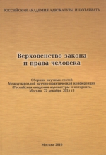 Верховенство закона и права человека : сборник научных статей международной научно-практической конференции (российская академия адвокатуры и нотариата. москва. 22 декабря 2015 г.) / Айнутдинов В. В., Александров А. А., Алмазова Е. А. [и др.]. - Российская Академия адвокатуры и нотариата, 2016. - ISBN 978-5-93858-089-3 .