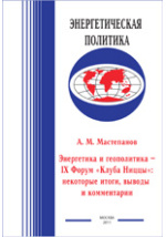 Энергетика и геополитика. IX Форум "Клуба Ниццы": некоторые итоги, выводы и комментарии. / А. М. Мастепанов. - Москва : Энергия, 2011. -