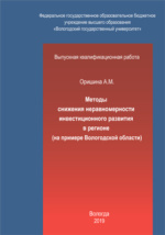 Методы снижения неравномерности инвестиционного развития в регионе (на примере Вологодской области) : студенческая научная работа / А. М. Оришина ; Вологодский государственный университет, Институт управления, экономики и юриспруденции, Кафедра финансов и кредита. - Вологда : б. и., 2019. -
