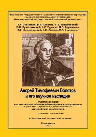 Андрей Тимофеевич Болотов и его научное наследие : учебное пособие для направлений подготовки бакалавриата и магистратуры «агрономия», «агрохимия и агропочвоведение», «ландшафтная архитектура» / Роньжина Е. С., Панасин В. И., Решновецкий С. Б. [и др.] ; ред. Роньжиной Е. С. - Калининградский государственный технический университет, 2015.