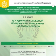 Досудебный и судебный порядок урегулирования налоговых споров : учебное пособие / Алиев Т. Т. - Всероссийский государственный университет юстиции (РПА Минюста России), Ай Пи Эр Медиа, 2016. -