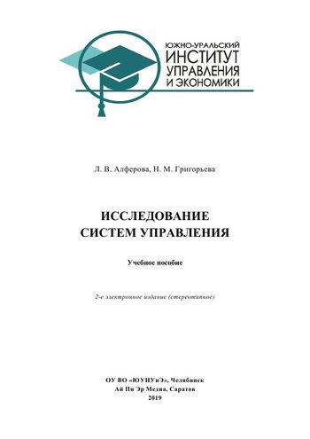 Исследование систем управления : учебное пособие / Алферова Л. В., Григорьева Н. М. - Южно-Уральский институт управления и экономики, Ай Пи Эр Медиа, 2019. -